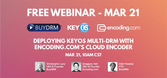 FREE Webinar March 21st - “Deploying KeyOS Multi-DRM With Encoding.com's Cloud Encoder” Tuesday, March 21st, we will go live with “Deploying KeyOS Multi-DRM With Encoding.com's Cloud Encoder” The webinar will discuss how to encode and encrypt...